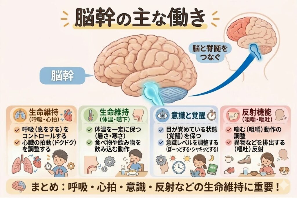 その中で 脳幹(のうかん) は、命を支える働きをしているとても重要な場所です。