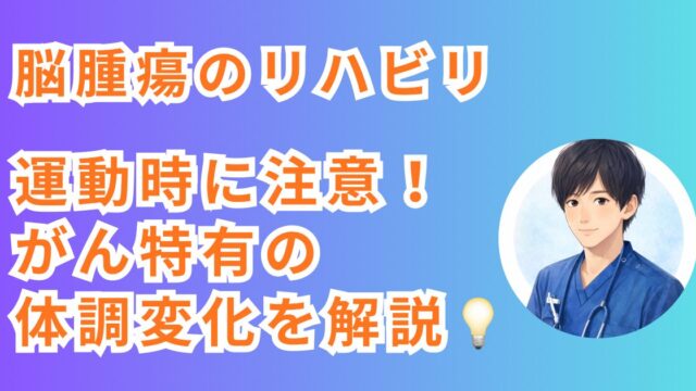 2026/03/10 zun_syuyotaiken 脳腫瘍の手術後は、回復のために運動やリハビリを行うことが大切ですが、体調の変化に注意することも重要です。 特にがん患者さんでは、一般的な疲労とは異なるがん特有の症状が現れる …